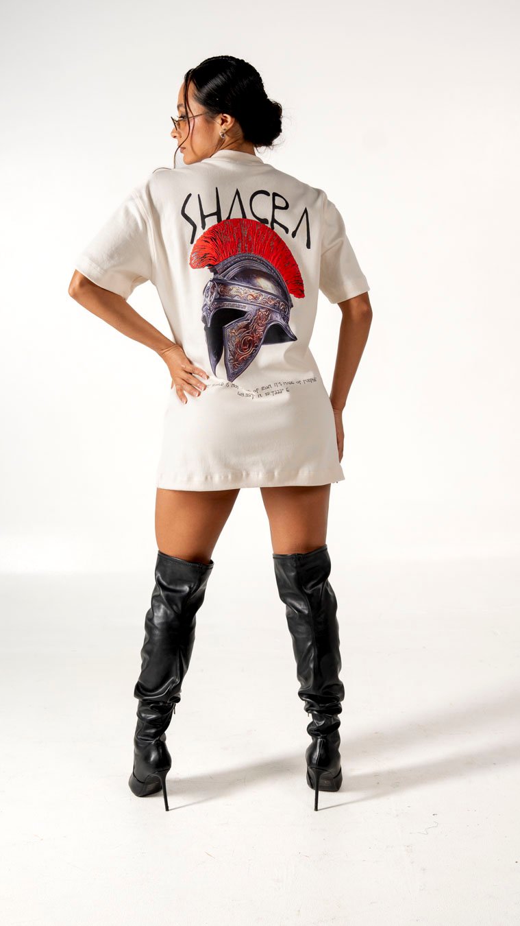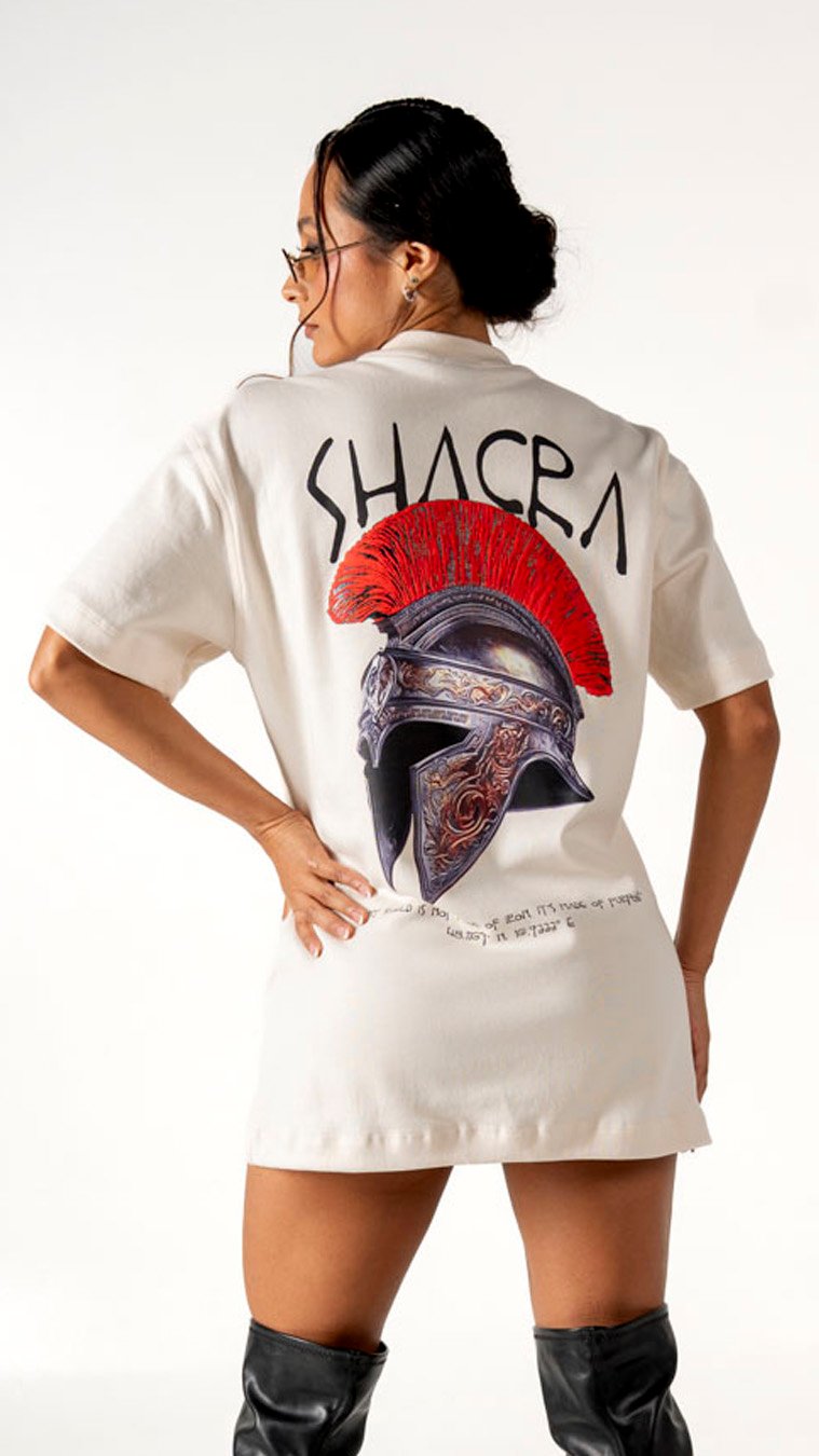 Channel the fearless spirit of ancient warriors with this women’s oversized blouse. Featuring a striking Spartan helmet graphic and bold lettering, it’s a statement piece that blends raw strength with modern street culture. Crafted from soft cotton for everyday wear, this blouse is built for those who carry courage and individuality as their true armor.